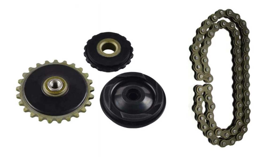 Pinione Role Intinzator + Lant Distributie / Pompa Ulei ATV Quad / Dirt Bike 4T 4 Timpi, capacitate 49cc 50cc 70cc 90cc 107cc 110cc 125cc - 84 zale.